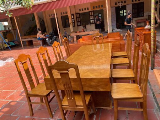 Bàn Ăn Cẩm Vàng 10 Ghế là sự lựa chọn hoàn hảo cho không gian ăn uống của bạn, mang lại sự sang trọng và tiện nghi trong mỗi bữa ăn gia đình.a