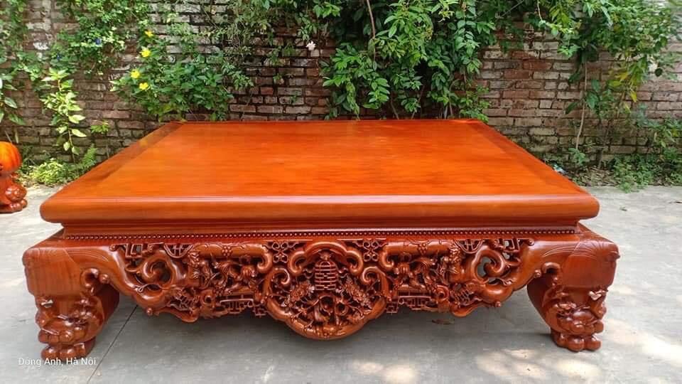 Chất liệu gỗ gụ được lựa chọn kỹ càng, không chỉ đảm bảo độ bền mà còn mang lại vẻ đẹp tự nhiên, sang trọng cho sản phẩm. Với sự chăm chút tỉ mỉ từ khâu chế tác đến hoàn thiện, mẫu sập ngũ phúc kim tiền này không chỉ là một món đồ nội thất mà còn là một tác phẩm nghệ thuật, mang đến phong thủy tốt và vượng khí cho gia chủ.